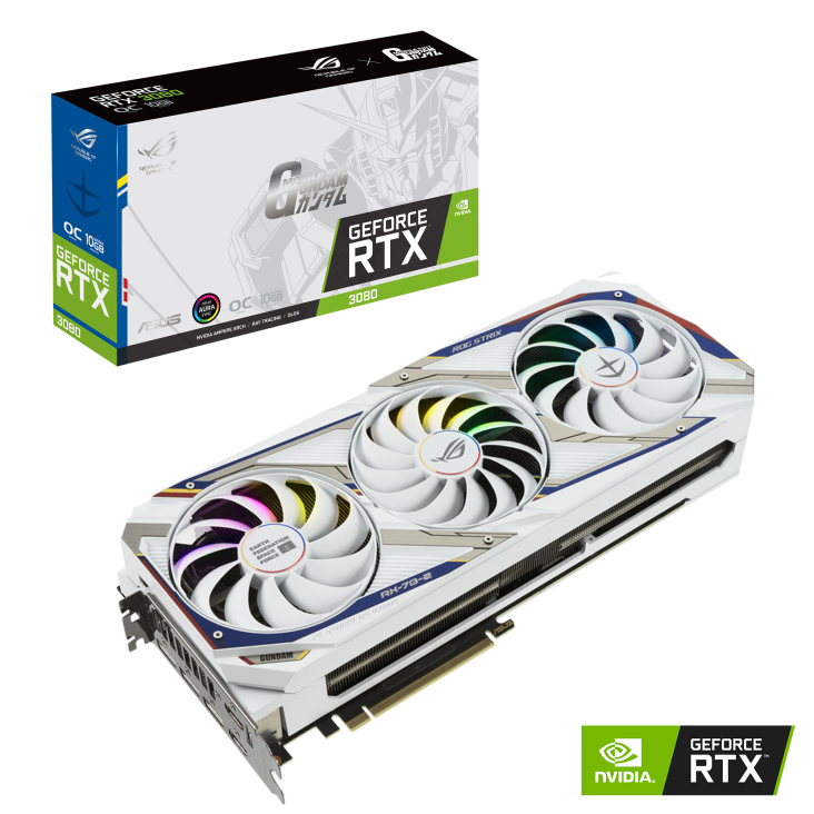 ASUS ROG Strix GeForce RTX 3080 GUNDAM EDITION được lấy cảm hứng từ series khoa học viễn tưởng được sản xuất bởi Sunrise, xoay quanh những người máy khổng lồ với tên gọi "Gundam". Sử dụng kiến trúc Ampare hoàn toàn mới cùng nhân RT thế hệ 2, nhân Tensor thế hệ 3, Nvidia RTX IO, VRAM GDDR6X và sản xuất trên tiến trình 8nm được Samsung làm riêng.